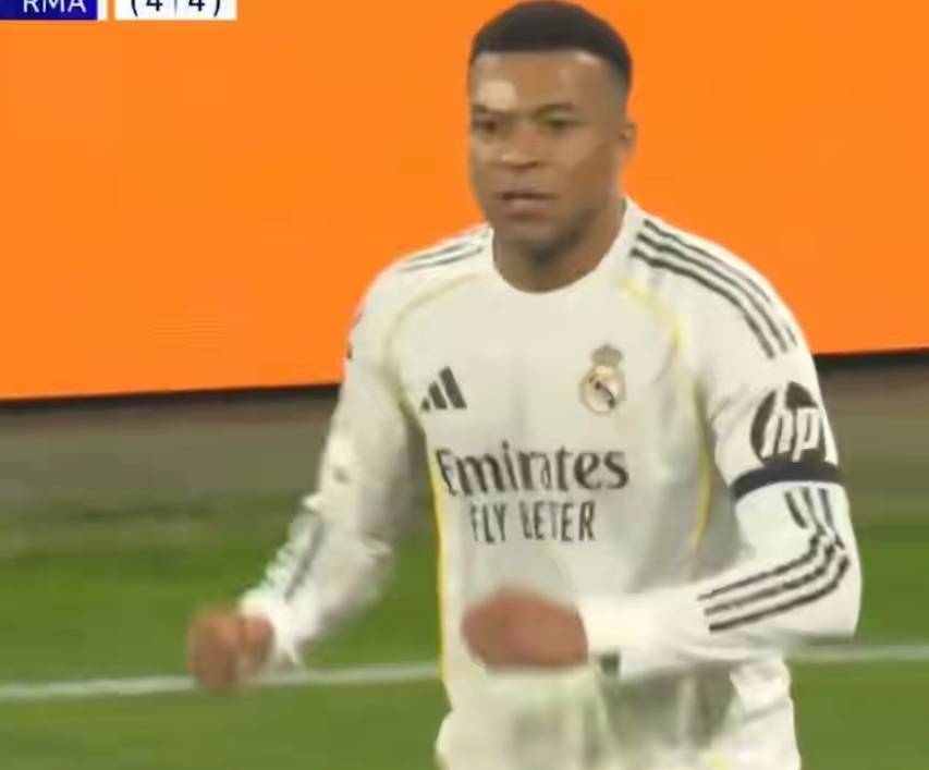 第42分钟,维尼修斯助攻,姆巴佩单刀破门,皇马3-2领先。